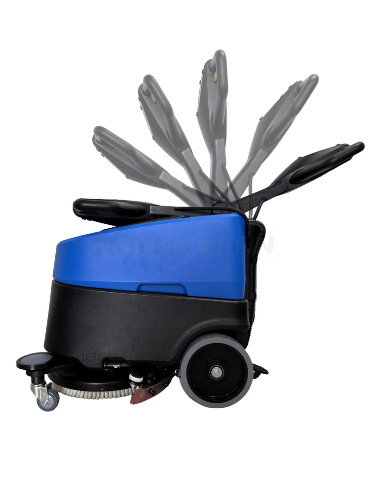 Batériový podlahový umývací stroj s chodiacou obsluhou Mopman 2 B 43 s nádržami s obsahom 26/29 litrov, bezúdržbovými batériami 2 x 12V 85V, integrovanou nabíjačkou a sklopným madlom je ideálny na upratovanie menších, stredných i stredne veľkých podlahových plôch vďaka veľkej kapacite nádrží a výdrži batérií.