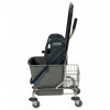 Upratovací jednovedrový vozík 1 x 27l s držadlom, konštrukcia kovová, pochrómovaná, pákový žmýkač a košík v cene. Kolesá pr. 80 mm.Súčasťou je pákový žmýkač, ktorý ponúka max. komfort pri práci. Toto upratovacie vedro je veľmi praktické pre upratovanie domácností, hotelov, privátov i wellness zariadení. V kombinácii s mopom FLIPPER sa stáva aj tento malý vozík úžasnou pomôckou pri umývaní podlahy.
