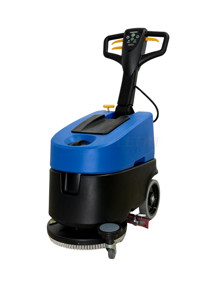Batériový podlahový umývací stroj s chodiacou obsluhou Mopman 2 B 43 s nádržami s obsahom 26/29 litrov, bezúdržbovými batériami 2 x 12V 85V, integrovanou nabíjačkou a sklopným madlom je ideálny na upratovanie menších, stredných i stredne veľkých podlahových plôch vďaka veľkej kapacite nádrží a výdrži batérií.