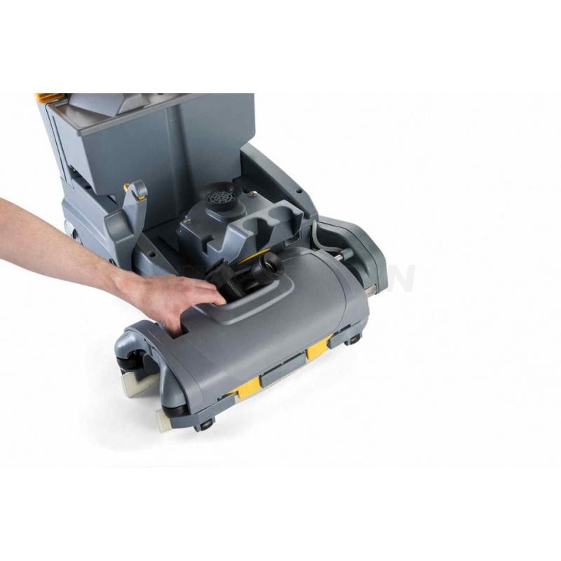 Batériový čistiaci stroj Rolly 11 M33 BC 10 Ah s rýchlo nabíjateľnou lítium-iónovou batériou, je mimoriadne kompaktný, tichý a vyznačuje sa jednoduchou a nenáročnou prevádzkou. Je teda ideálny pre menej dostupné a úzke priestory, kde je obtiažna manipulácia, ako aj tam, kde sa vyžaduje tichá prevádzka. Ergonomická rukoväť a tiež možnosť jej sklopenia, umožňuje stroju dostať sa napríklad pod stoly a stoličky - kdekoľvek je potreba.