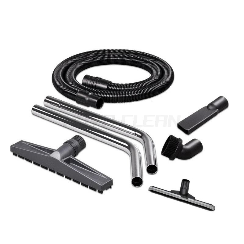 Sada obsahuje: 4 m sacia hadica, 1 x S-rúrky sacie potrubie, 1 x Násada na vysávanie tekutín s šedými gumičkami, 1 x Prachová podlahová násada s kefkami, 1 x Štrbinová hubica priemer 44mm, 1 x čistiaca hubica priemer 44mm