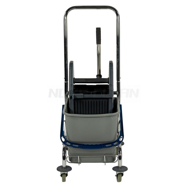 Upratovací jednovedrový vozík 1 x 27l s držadlom, konštrukcia kovová, pochrómovaná, pákový žmýkač a košík v cene. Kolesá pr. 80 mm.Súčasťou je pákový žmýkač, ktorý ponúka max. komfort pri práci. Toto upratovacie vedro je veľmi praktické pre upratovanie domácností, hotelov, privátov i wellness zariadení. V kombinácii s mopom FLIPPER sa stáva aj tento malý vozík úžasnou pomôckou pri umývaní podlahy.