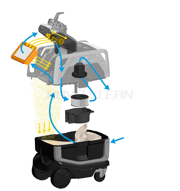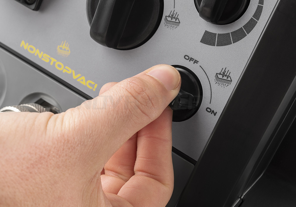 Inovatívny NONSTOPVAC! systém, vďaka automatickému čistenie hlavného filtra spätným prúdením vzduchu, zaisťuje neustále vysávanie a výrazne znižuje prestoje, čo umožňuje operátorovi pracovať bez prerušenia pri zachovaní vysokého sacieho výkonu.