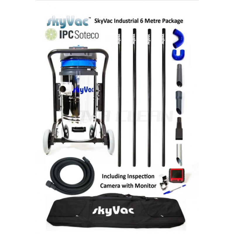 SkyVac Industrial je priemyselný vysávač určený pre vysávanie vo výškach (vnútorné priestory) a v odkvapoch. Ľahko odstráni nečistoty z výšky a ťažko dostupných miest ako sú parapety, rímsy, nosné konštrukcie, elektroinštalácie, osvetlenie, vzduchotechnika, ale aj odkvapy atď. Sacie rúry sú vyrobené z karbónového vlákna, vďaka ktorému sú veľmi ľahké (1,5 m váži cca 310 g) a super tvrdé, takže nedochádza k žiadnemu priehybu. Už žiadne rebríky, lešenie, plošiny.